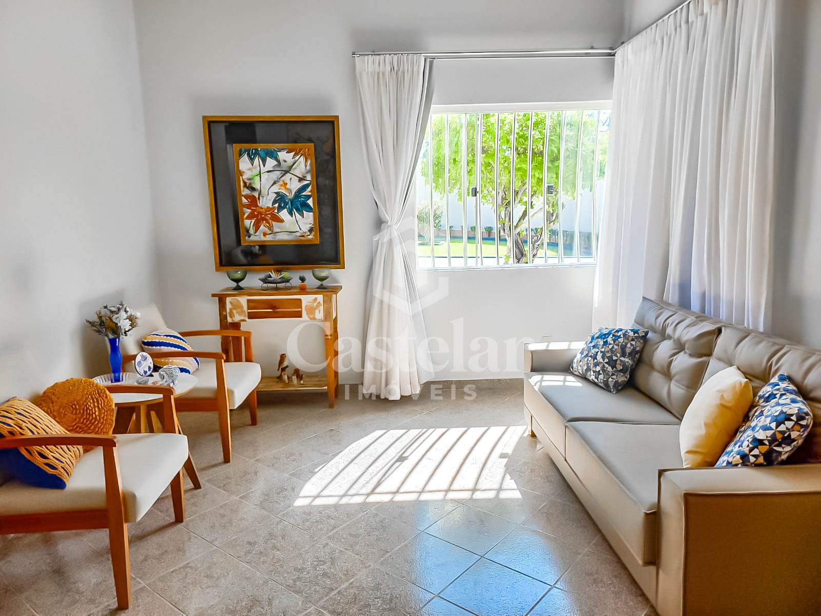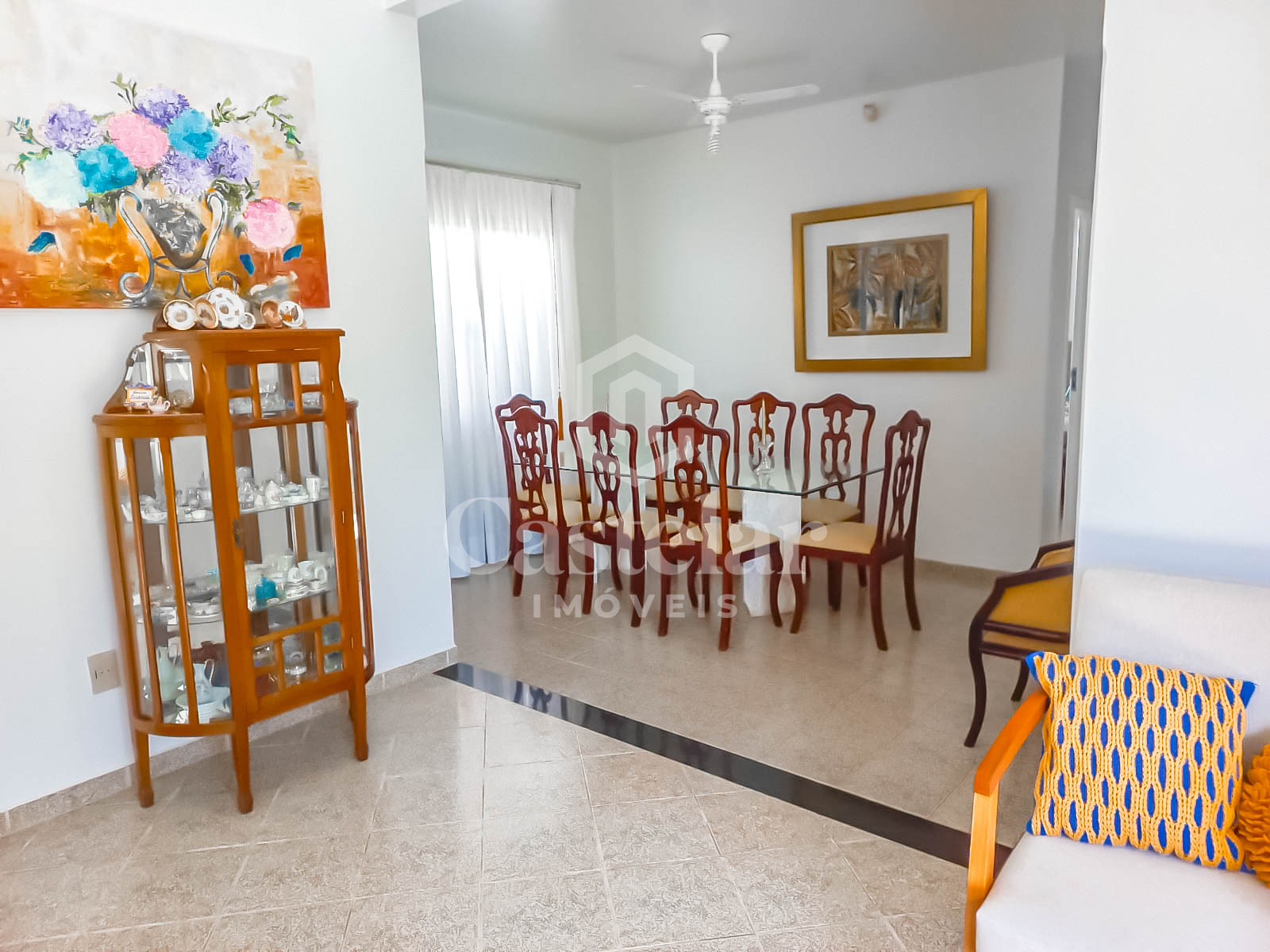 - Área Interna: 5 quartos (1 suíte), 3 salas (estar, TV, jantar), 3 banheiros, cozinha com armários, despensa e área de serviço.